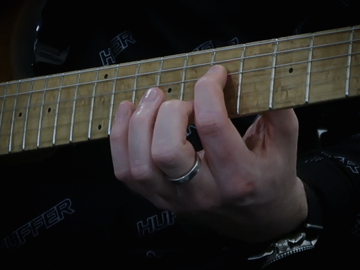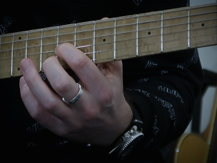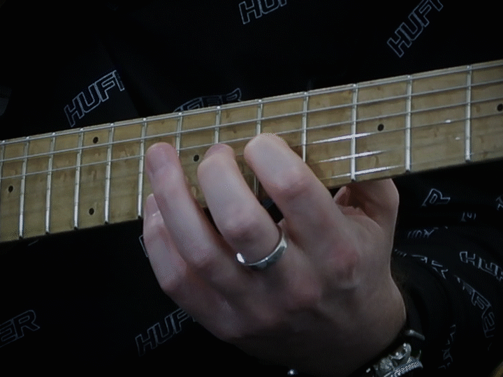 To do this one, you have to rotate your finger so you’re playing it horizontally on the fret, which will allow you to transfer the pressure to the pad of your finger. Once you are pressing the note with the pad of your finger, you can rotate your finger back around so it’s upright. However, now you will be playing the note with the pad of your finger, setting you up well to play the next note on the string above. The hardest part of this technique is doing the whole thing in one movement without changing the pitch of the note you are holding. It’s challenging! But if you do it well it can save your solo.